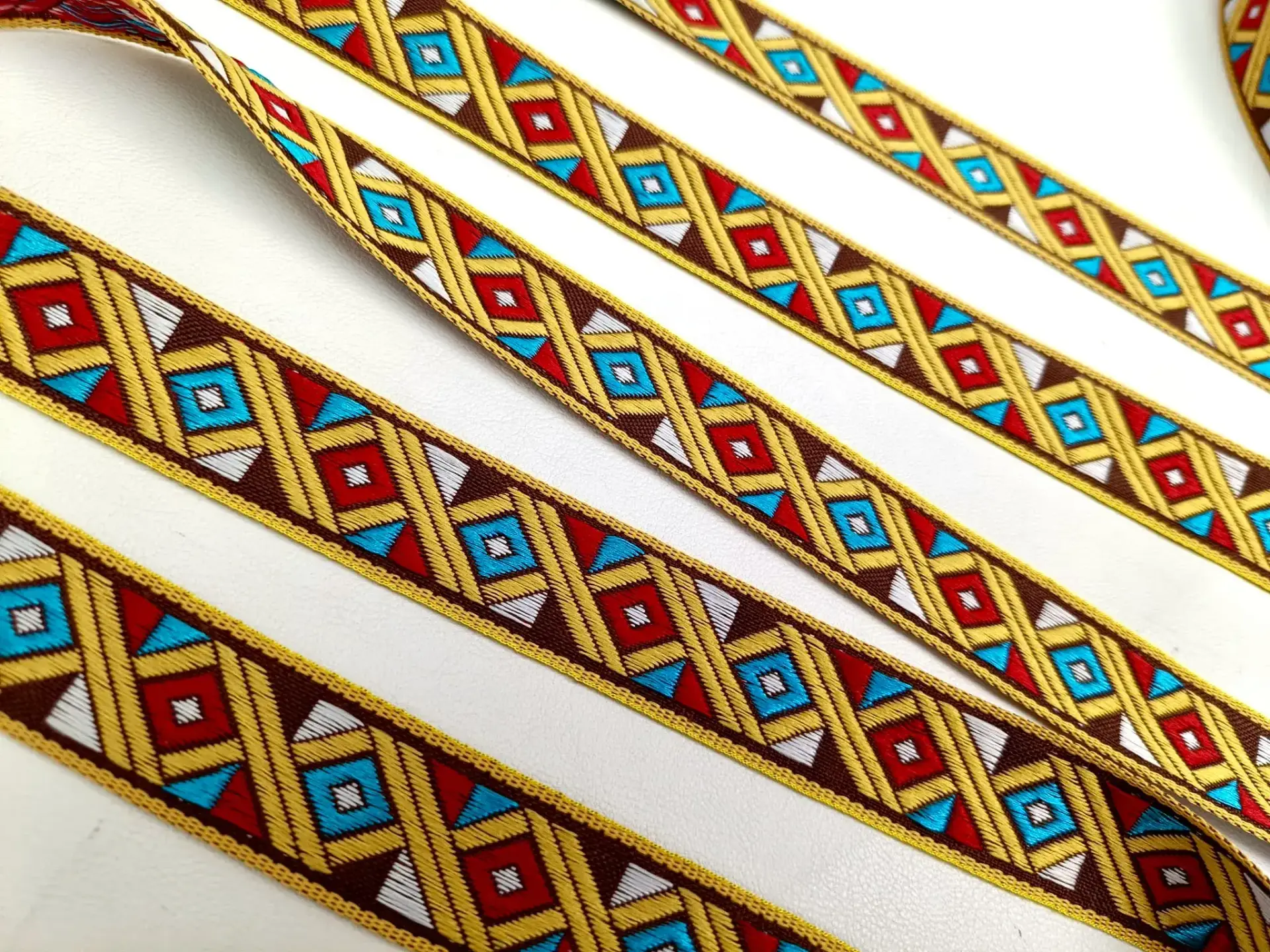 Farbenfrohe Jacquardborte mit Ethno-Muster 22 mm