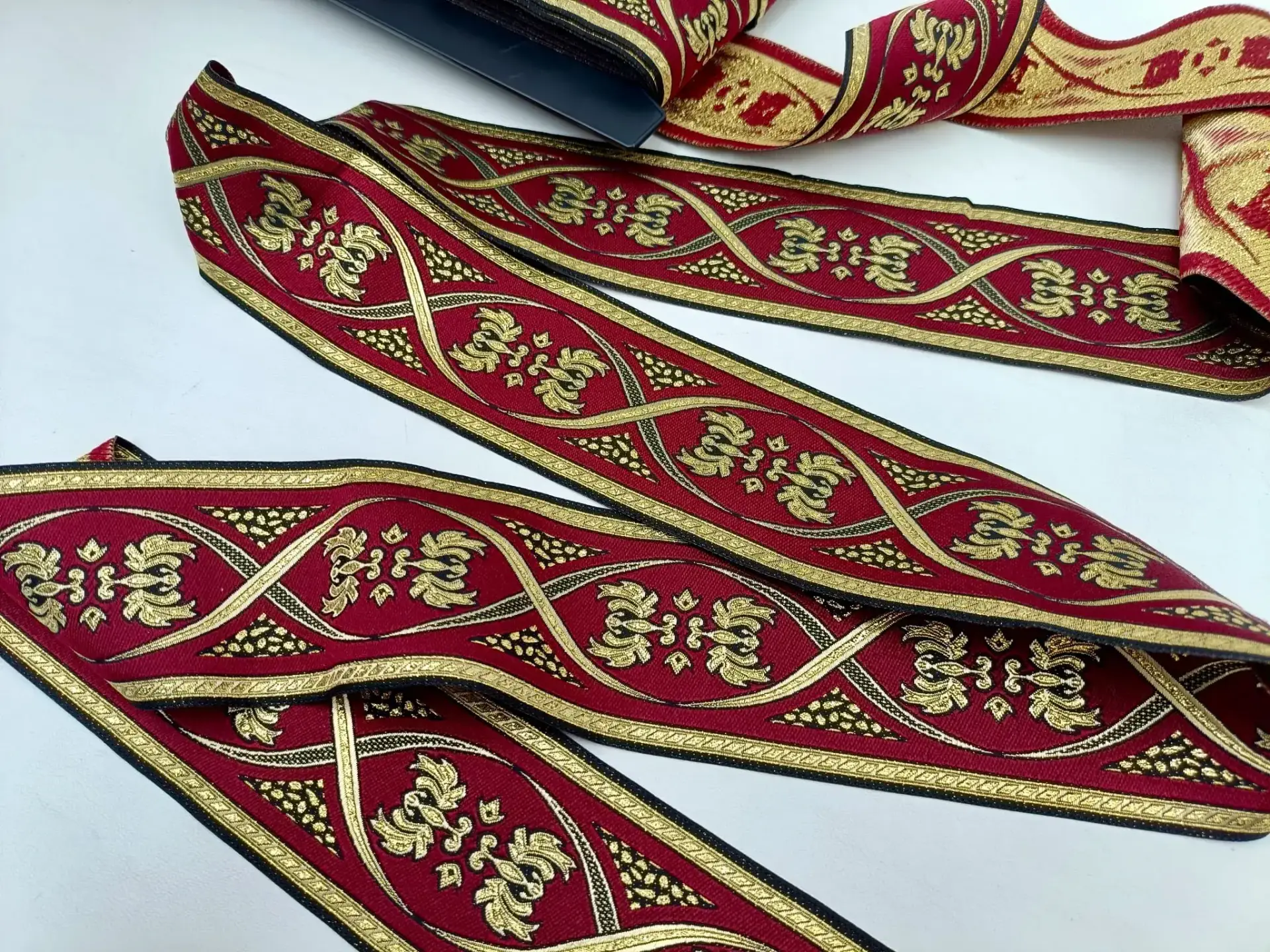 Florale Ornamente Jacquardborte bordeaux